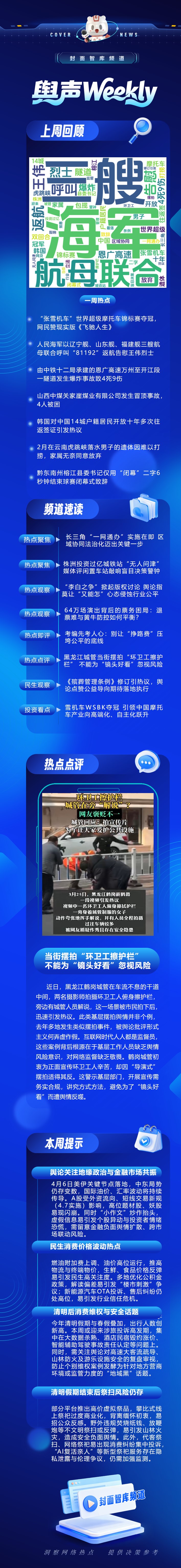 赴约周一,本期 “舆声 weekly” 如约而至。过去的一周,社会热点多元交织,民生关切、文体事件同步引发舆论聚焦。张雪机车在世界超级摩托车锦标赛夺冠,被网民赞为现实版《飞驰人生》,传递出昂扬向上的正能量;与此同时,安全生产领域事件牵动人心,恩广高速隧道爆炸致4死9伤、山西煤矿冒顶事故4人被困,引发公众对生产安全、应急处置与责任落实的高度关注,警示安全生产底线不容松懈。