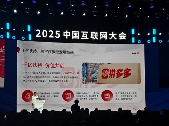 他表示,拼多多未来三年内拟投入资金、流量等资源超过1000亿元人民币,助推平台商家新质转型升级。